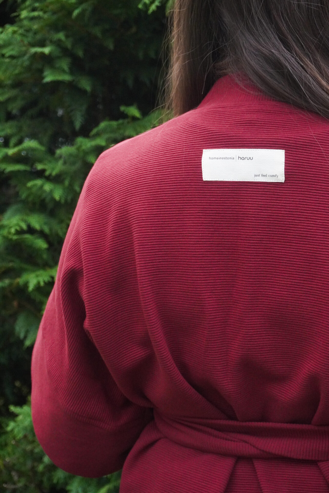 Elegants ja lihtsus kohtuvad ka selles bordoo kimono-jakis, mis on osa omanäolisest HomeInEstonia x Haruu erikollektsioonist. Saades inspiratsiooni Jaapani traditsioonilisest disainist, on see kimono-jakk kujundatud rõhutama minimalistlikku ilu ja funktsionaalsust.