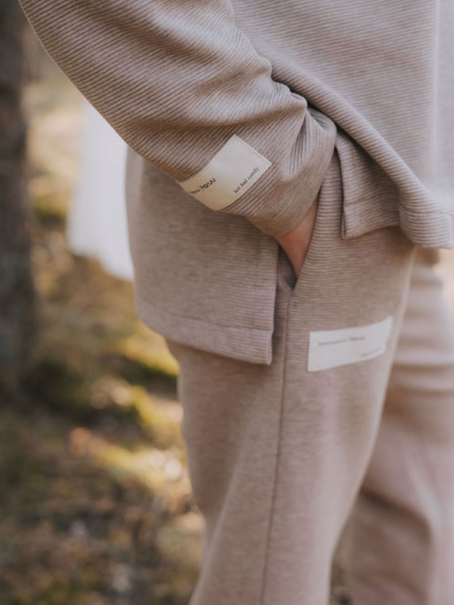 Elegantsed ja mugavad – need sõnad kirjeldavad kõige paremini uusi pükse, mis on osa HomeInEstonia x Haruu erikollektsioonist. Püksid on disainitud mõttega, et oleks võimalik kanda neid igas olukorras – olgu see kodus lõõgastumine või kontoris töötamine.